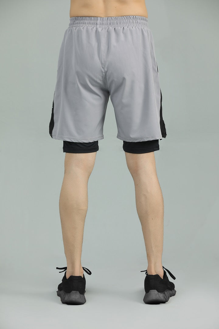 FUSIONPRO Dual Pocket Athletic 2 in 1 Shorts - Silver Grey